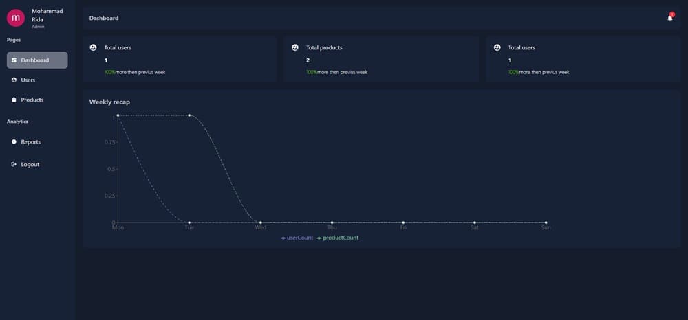 Small admin dashboard project that shows some analysis about users and products with ability to add users and products with info. with ability to login using username and password or login with google